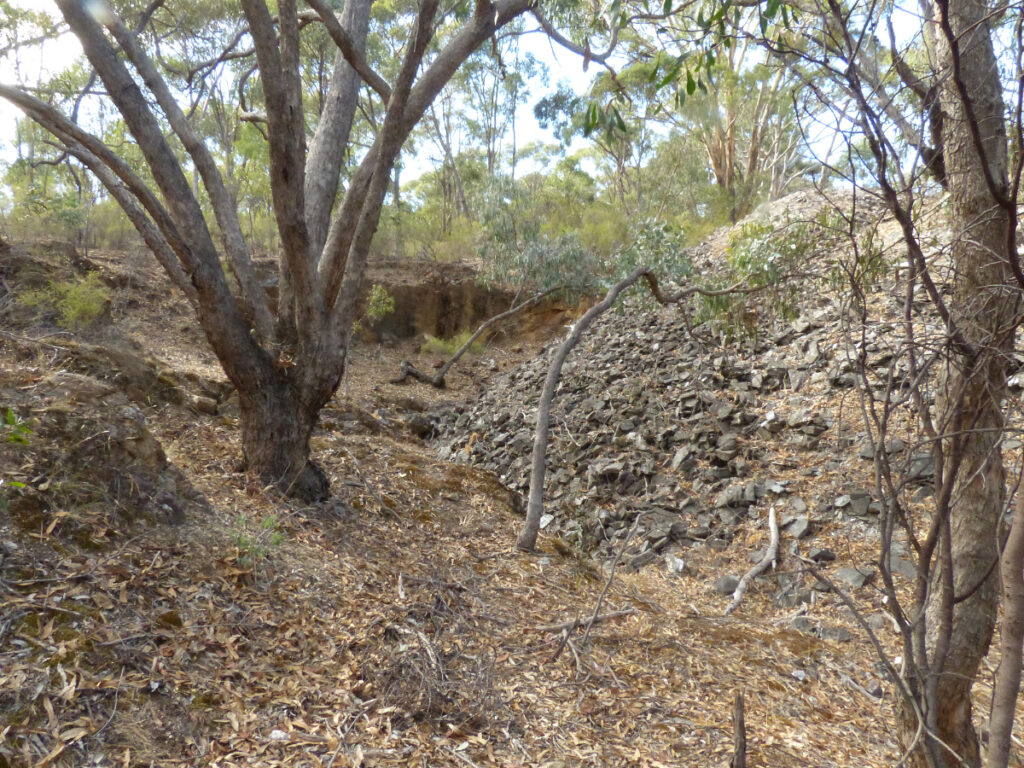 A saddle reef is quartz that gathers between rock beds along the top part of an anticline, hence the reference to a saddle. Sometimes these were rich sources of gold and were keenly searched for by miners, although they were less likely to be fruitful in the Castlemaine goldfield. On the other hand, Bendigo’s saddle reefs have been reliably rich sources of gold, historically making the Bendigo goldfield one of the richest in the world.