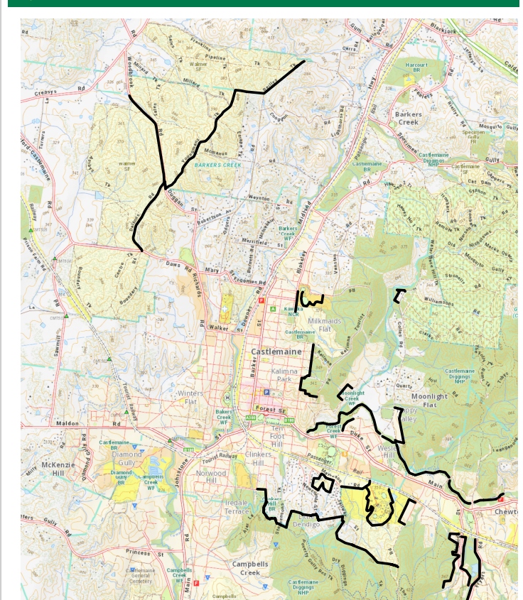 The draft map below shows the strategic fuel breaks proposed for the Castlemaine township area. Final decisions about the breaks are yet to be made, but the works are expected to be completed this financial year.