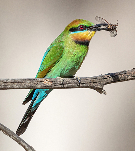 Rainbow Bee-eater with cicada. Photo: Geoff Park